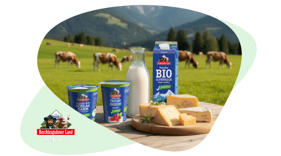 Na alpských loukách se krávy volně pasou na horských bylinkách. Díky tomu mají BIO mléko i z něj vyrobené sýry a jogurty lahodnou chuť, smetanovou barvu a vůni, která odráží čistotu hor. Ochutnejte čerstvé alpské mléko, tvoroh nebo jogurty značky Berchtesgadener Land zbavené laktóty přírodní cestou.