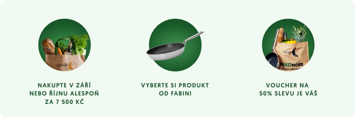 V Rohlíku víme, že to pravé kouzlo domova se rodí v kuchyni. U stolu, nad talířem skvělého jídla. A napadlo nás, že bychom tenhle zážitek mohli posunout o úroveň výš. Proto jsme spojili síly s českou značkou FABINI, která vyrábí nadčasové nádobí z těch nejlepších materiálů a s důrazem na každý detail. Je to parťák, který vaření povýší na radost. Jen u nás si až do konce října můžete vybrat z jejich prémiových kousků s neuvěřitelnou 50% slevou. Ale pozor! Akce je omezena jen do vyprodání zásob, tak ať vám tahle příležitost neuteče.