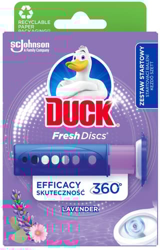 Duck Fresh Discs Lavender čistí toaletu s každým spláchnutím, zabraňuje usazování vodního kamene a dlouhodobě ji osvěžuje vůní levandule. Náplň vydrží až 8 týdnů.
