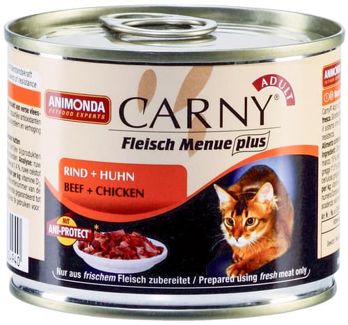 Animonda Carny Adult hovězí a kuře konzerva pro kočky200 gTento produkt již není v nabídce.Země původu: dle aktuální nabídkypro přesnou informaci kontaktujte zákaznickou podporu