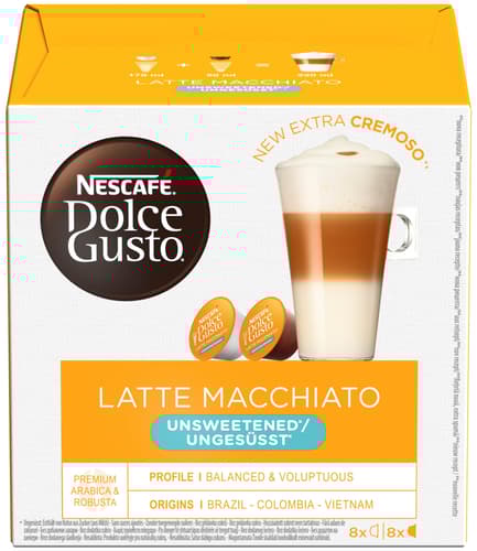 Nescafé Dolce Gusto Latte Macchiato Unsweetened16 This product is no longer available.Country: according to the current offerplease contact customer support for the exact information