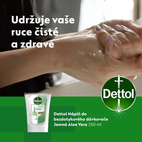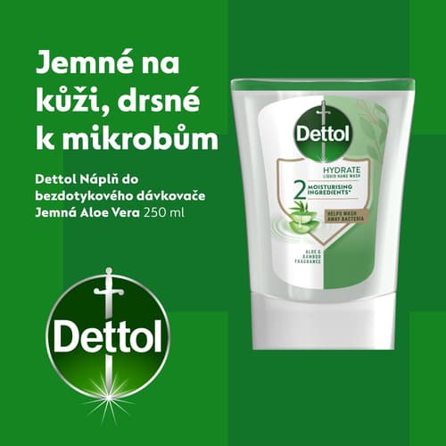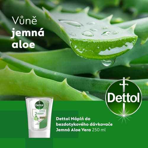 Náplň do bezdotykového dávkovače mýdla Dettol je s vůní aloe vera.
