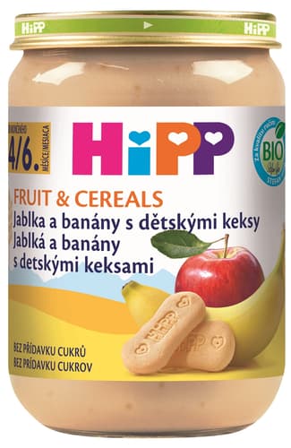 HiPP BIO Ovocná kaše jablka a banány s dětskými keksy