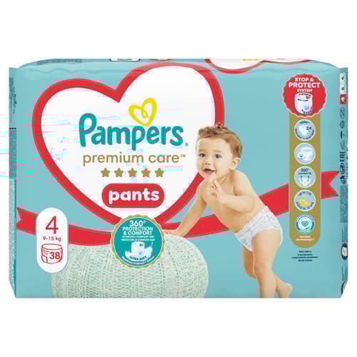 Dopřejte svému děťátku nejlepší pohodlí a ochranu od Pampers s plenkovými kalhotkami Pampers Premium Care. Nyní s jedinečnou kapsou Stop & Protect, která pomáhá zabránit protečení vzadu a zajistit až 12ti hodinovou úplnou ochranu proti protečení.