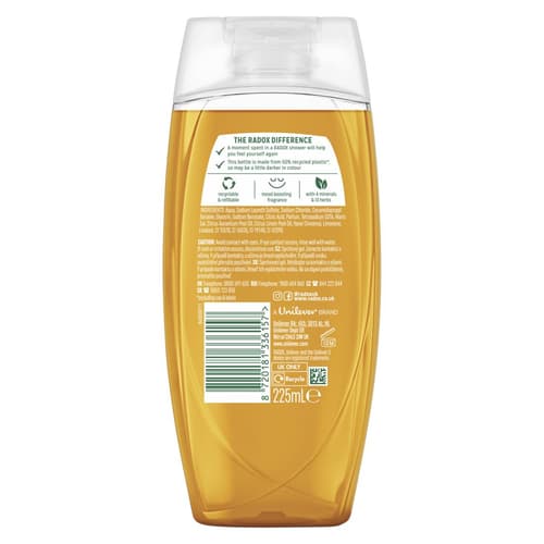 Radox Feel Revived sprchový gel přináší osvěžující zážitek ze sprchování a zanechává pokožku příjemně provoněnou. Obsahuje přírodní vůni mandarinky a meruňky inspirovanou nejlepšími ingrediencemi z přírody. Tento sprchový gel čistí tělo, zlepšuje náladu a zanechává pocit revitalizace a svěžesti. Má neutrální pH, je dermatologicky testovaný a vhodný pro všechny typy pokožky. Snadno se oplachuje a zanechává pokožku svěží, čistou a povzbuzenou.
