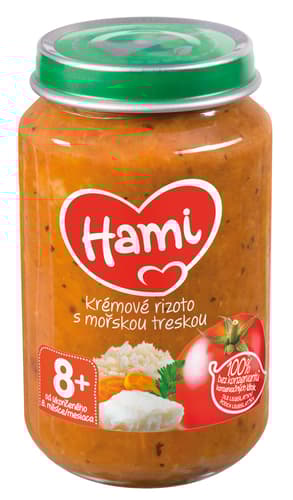 Hami Příkrm krémové rizoto s mořskou treskou je vhodný pro děti od ukončeného 8. měsíce.