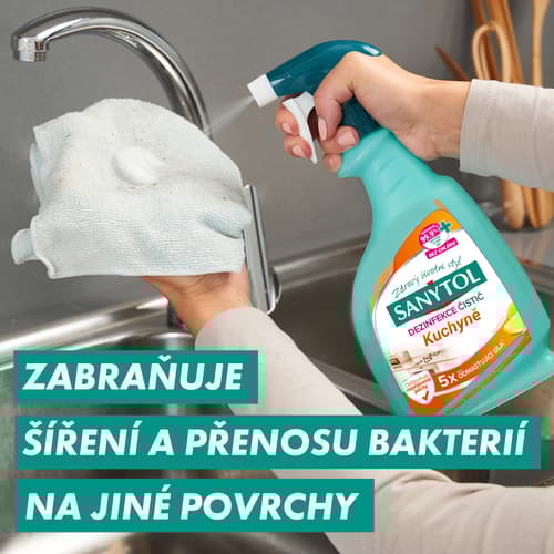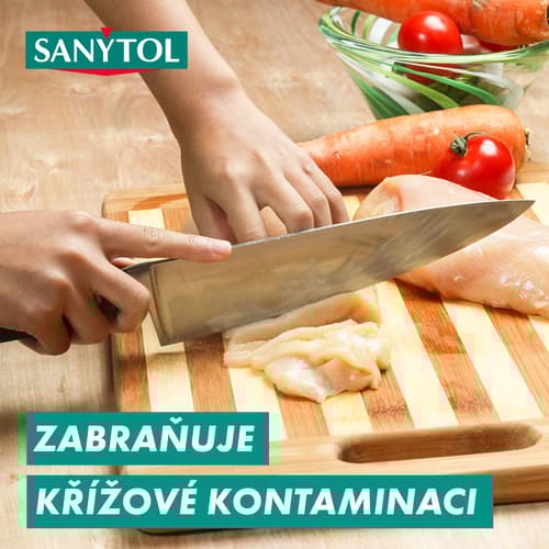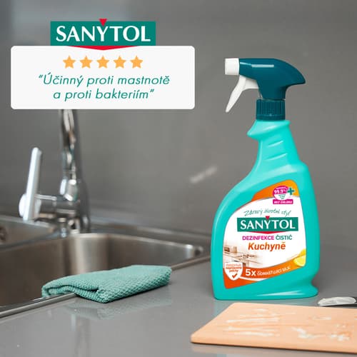 Sanytol odstraňuje až 99,9 % bakterií, plísní a virů. Složení bez chlóru účinně a rychle odmastí jakýkoliv povrch a zanechá ho hygienicky čistý s příjemně citrusovou vůní.