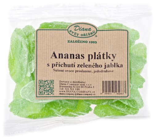 Diana Ananas sušený plátky s příchutí Zelené jablko