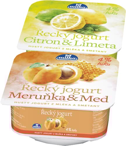 Milko Řecký jogurt 4% Meruňka med/citrón limetka, 2x140g,