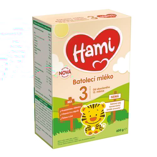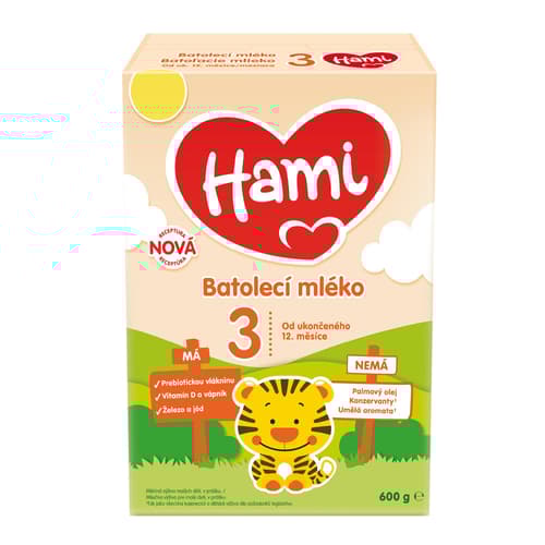 Hami mléko od ukončeného 12. měsíce je určené pro výživu malých dětí od 1 roku jako součást smíšené a vyvážené stravy dítěte. Dohlédněte na hygienu ústní dutiny v období růstu prvních zoubků, především před spaním. Pro zdraví dítěte je důležité dodržování návodu na přípravu a uvedených doporučení. Hami mléko od ukončeného 12. měsíce není určené pro výživu kojenců do 1 roku. Potravina pro zvláštní výživu.