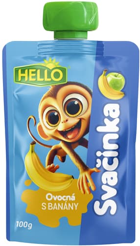 ovoce 85 % hm. (jablečné pyré 62 % hm., banánové pyré 23 % hm.), voda, cukr, modifikovaný škrob, kyselina: kyselina citronová, antioxidant: kyselina askorbová. 100g výrobku – obsahuje 17g přírodních sladidel, bylo použito 92g ovoce