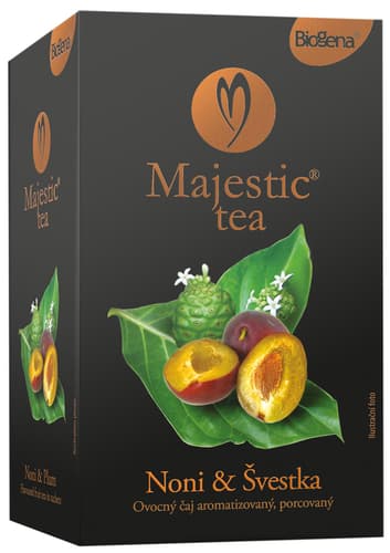 Majestic Tea Noni & švestka je výborný nápoj s dokonalou vůní švestek a noni. Noni je tropické ovoce, které je považováno za tak zvanou superpotravinu. Podporuje imunitní systém a obranyschopnost organismu vůči virům a bakteriím, které se staly odolnými vůči antibiotikům. Jako správný stimulant dodává tělu energii, předchází únavě, osvěžuje mysl, zlepšuje paměť a koncentraci.