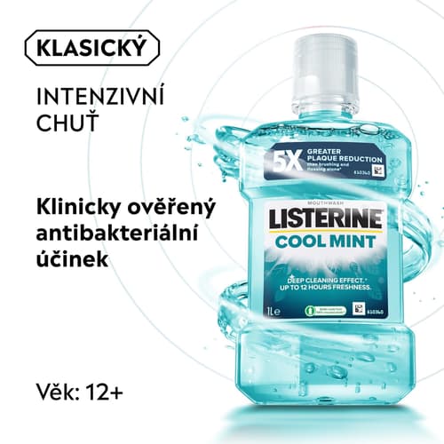 Při použití dvakrát denně Listerine odstraňuje bakterie, které v ústech zůstávají po čištění zubů. Bylo prokázáno, že Listerine zlepšuje vaši ústní hygienu a účinkuje v místech, které jsou zubním kartáčkem obtížně dosažitelné. Zároveň také omezuje a předchází tvorbě zubního plaku, jedné z hlavních příčin problémů s dásněmi, a osvěží váš dech.
