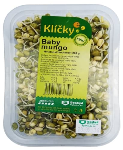 Beskyd Fryčovice Baby mungo klíčky, vanička200 gTento produkt již není v nabídce.Země původu: dle aktuální nabídkypro přesnou informaci kontaktujte zákaznickou podporu