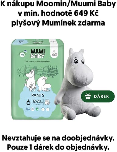 Muumi Baby ECO plenkové kalhotky jsou ekologické jednorázové plenky pro denní i noční nošení, ideální pro děti 12–20 kg. Tyto finské plenky jsou vyrobeny z vysoce kvalitních BIO surovin, jsou 100% bez chlóru, alergenů a dráždivých vůní. Jsou vysoce měkké, elastické, biologicky rozložitelné a poskytují dvojitou ochranu proti úniku. Balení obsahuje 36 kusů.