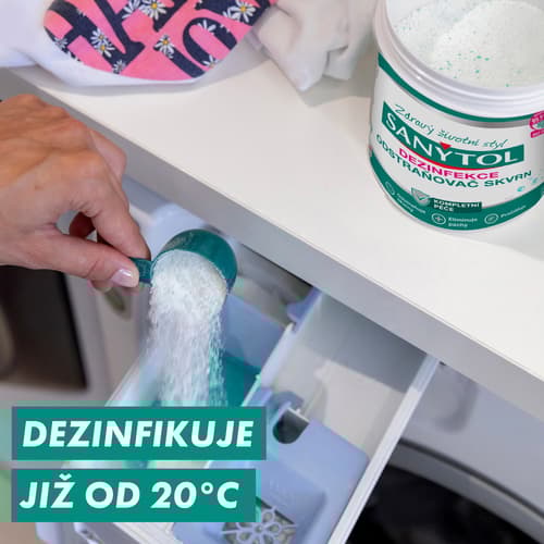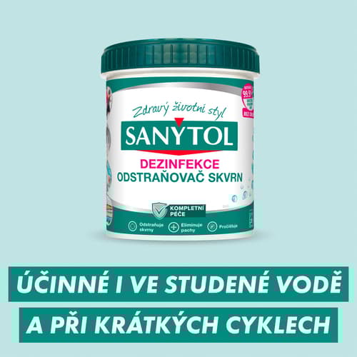 Prádlo vyprané při nízkých teplotách i nadále obsahuje mikroby. Bakterie a plísně v prádle způsobují nepříjemný zápach a mohou přenášet nemoci nebo mohou způsobit podráždění pokožky. Sanytol Dezinfekční odstraňovač skvrn je ideální pro sportovní oblečení, spodní prádlo, bytový textil apod.