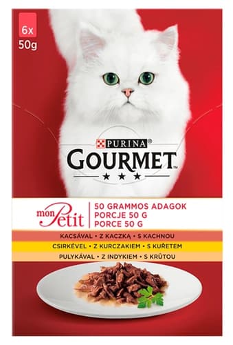 Gourmet Mon Petit kuře, kachna, krůta v omáčce 6×50 g pro kočky300 gTento produkt již není v nabídce.Země původu: dle aktuální nabídkypro přesnou informaci kontaktujte zákaznickou podporu