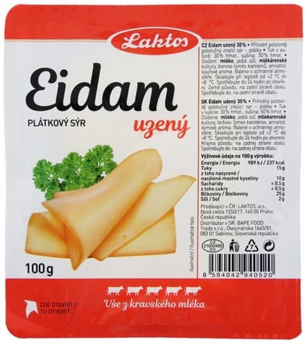 Laktos Eidam uzený 30% plátky100 gThis product is no longer available.Country: according to the current offerplease contact customer support for the exact information