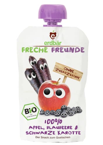 erdbär Freche Freunde BIO Ovocná kapsička jablko, borůvka a černá mrkev