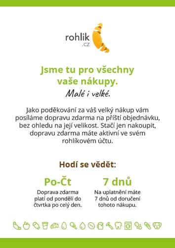 Doprava zdarma na příští objednávku PO-ČT (více na letáčku v nákupu)