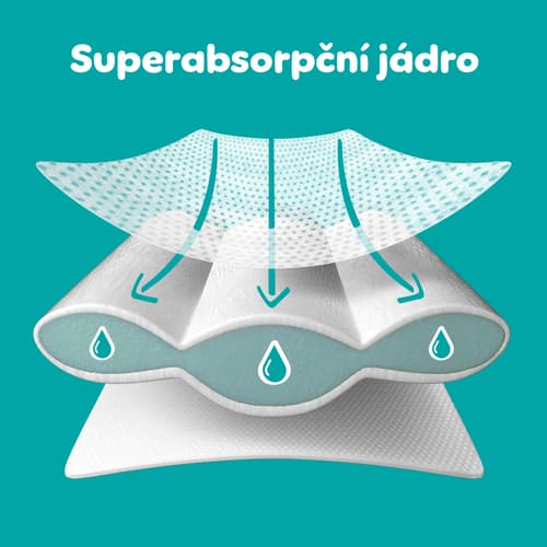 Proto mají plenky Pampers další absorpční vrstvu „Sleep“, která pomáhá rychle absorbovat tekutinu. Bez ohledu na to, jak se děťátka pohybují nebo v jaké poloze spí, tak budou díky plenkám Pampers v suchu po celou noc.