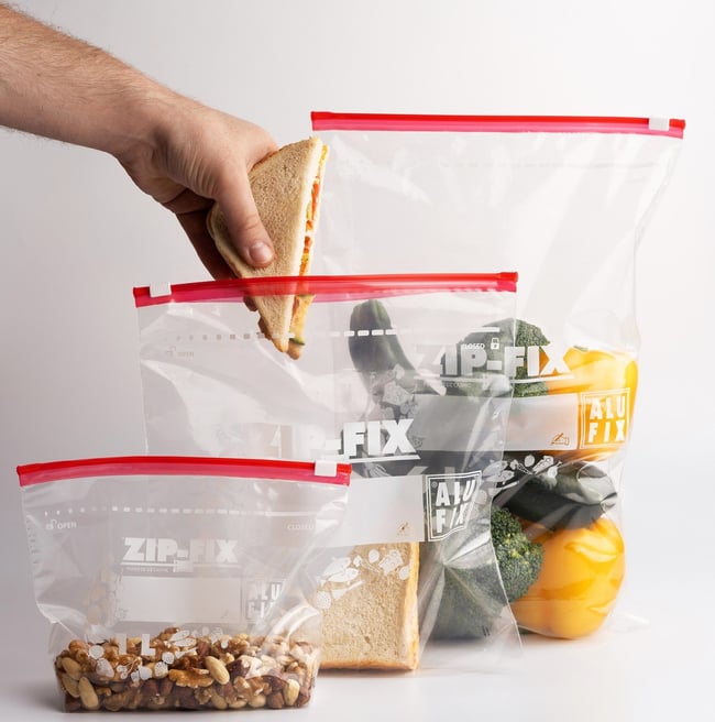 Univerzální zipové sáčky ve třech různých velikostech, které lze používat opakovaně.