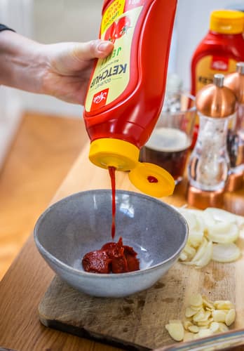 Nic míň než osvědčená kombinace rajčat a vybraného koření v pořádném balení, do kterého se vešlo 165g rajčat na 100g kečupu.