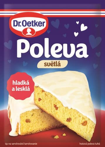 Dr. Oetker světlá poleva. Hotová tuhá cukrářská poleva na zdobení dortů, zákusků a jiných moučníků.
