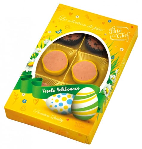 Česká republika,Sváteční velikonoční balení paštik. Neobvyklé spojení chutí ideální pro každého gurmána. Paštiky jsou balené ve stylu bonboniéry.