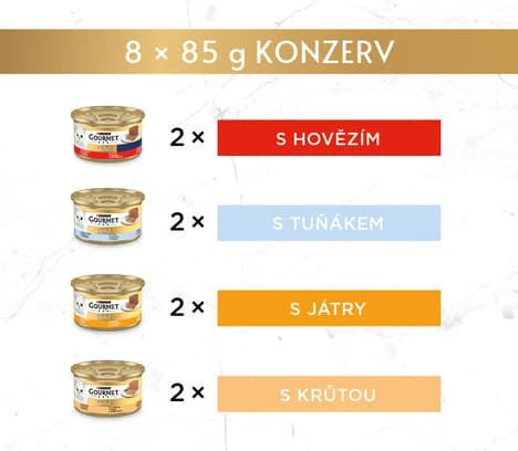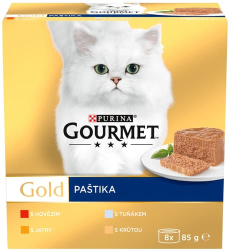 Vaše kočka je opravdový znalec a ráda zkouší nejrůznější textury a příchutě každý den. Proto Gourmet Gold vytvořil jemné paštiky, lahodné receptury, které potěší její mlsný jazýček novým chuťovým zážitkem během každého jídla.