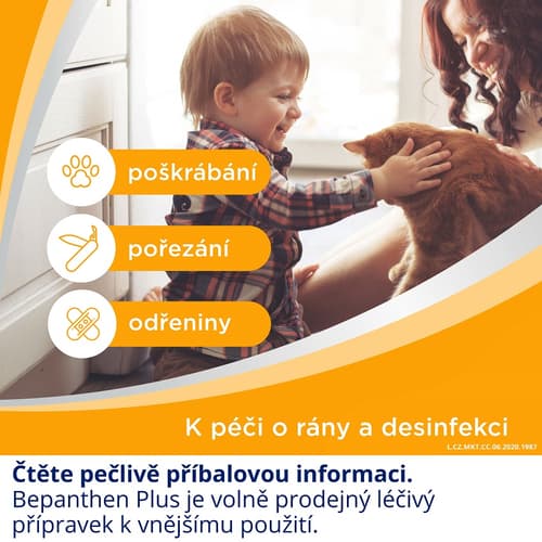 Dávkování: Nanášejte tenkou vrstvu Bepanthen Plus i několikrát denně na očištěnou ránu nebo zanícenou oblast pokožky. Podle potřeby lze ránu chránit náplastí nebo obvazem. Je třeba se vyhnout aplikaci přípravku na větší kožní plochy. Bepanthen Plus lze lehce nanášet i omývat, nemastí ani nelepí.