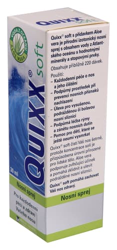 Zdravotnický prostředek. QUIXX soft je určen pro každodenní péči o nosní sliznici. S přidaným extraktem z Aloe vera tento izotonický roztok účinně čistí a zvlhčuje nos a tím přispívá k tomu, aby dýchací systém zůstal zdravý. Koncentrace soli v přípravku QUIXX soft je přizpůsobena přirozené hladině v lidském těle, a proto je QUIXX soft šetrný k vašemu nosu.