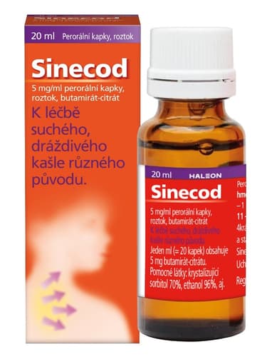 Sinecod se používá k léčbě suchého, dráždivého kašle různého původu. Sinecod 0,5 % perorální kapky, roztok mohou užívat děti od 2 měsíců.