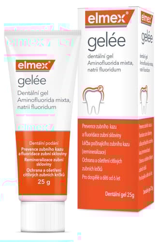Přípravek Elmex gelée se používá - k prevenci zubního kazu a fluoridaci zubní skloviny - k léčbě počínajícího zubního kazu (remineralizace) - k ochraně a ošetření citlivých zubů Přípravek je určen pro děti od 6 let, dospívající a dospělé.