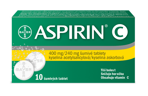 Aspirin C šumivé tablety s 400mg kyseliny acetylsalicylové a 240mg vitaminu C. Účinně ulevují od mírných až středně silných bolestí, jako jsou bolesti hlavy, zubů, svalů, kloubů nebo menstruační bolesti. Pomáhají také snižovat horečku při nachlazení či chřipce. Balení obsahuje 10 tablet.