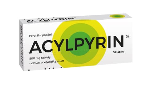 Přípravek s obsahem kyseliny acetylsalicylové tlumí bolesti a snižuje horečku, ve vyšších dávkách má protizánětlivé účinky. Acylpyrin lze bez porady s lékařem užívat ke snížení horečky a k úlevě od bolesti při chřipce a nachlazení, k potlačení mírné až středně silné bolesti (např. hlavy, zubů, bolesti v zádech a bolesti při menstruaci). U kloubních a svalových bolestí (vyjma těch, které doprovází chřipková onemocnění nebo bolesti zad) a při bolesti nervového původu je nutná porada s lékařem. Přípravek mohou užívat bez doporučení lékaře dospělí a dospívající od 16 let. Děti a dospívající do 16 let smějí užívat kyselinu acetylsalicylovou vždy pouze po doporučení lékařem. Balení obsahuje 10 tablet.