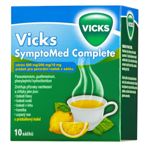 VICKS SYMPTOMED COMPLETE CITRÓN 500MG/10MG/200MG Prášek pro perorální roztok v sáčku 101 pcThis product is no longer available.