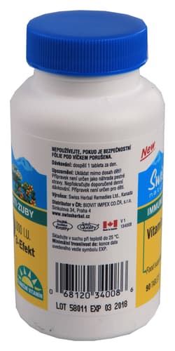 Doplněk stravy. Vitamin D: - přispívá k normální funkci imunitního systému, - vstřebávání vápníku z potravy, - udržení normálního stavu kostí a zubů - podílí se na procesu dělení buněk. Produkt neobsahuje žádné chemické konzervační látky ani syntetická barviva, mléčné a pšeničné produkty, kvasinky ani cukr. Nepřekračujte doporučené denní dávkování. Uchovávejte mimo dosah dětí. Doplňky stravy nejsou náhradou pestré stravy. Balení: 90 tablet.