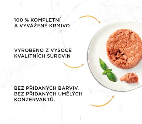 Dospělou kočku o průměrné hmotnosti (4 kg) krmte 4 konzervami denně, nejméně ve 2 samostatných dávkách. Krmné dávky jsou určené pro dospělé středně aktivní kočky v přirozeném prostředí. Individuální potřeby se mohou lišit a krmnou dávku je proto nutné přizpůsobit tak, aby si vaše kočka udržela optimální hmotnost.