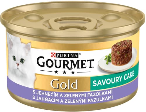 Gourmet Gold Savoury Cake představuje jemně pokrájené kousky s jehněčím nebo jinými vytříbenými příchutěmi, pečlivě ochucené jen špetkou omáčky. To vše se snoubí v lahodný dortík a vaše kočka si tak může vychutnat každé sousto.