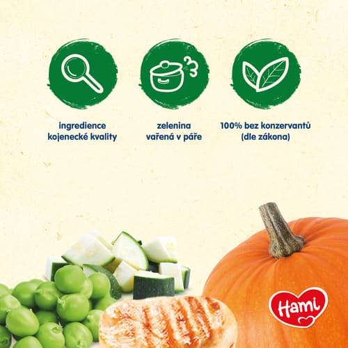 Hami Příkrm pestrá zelenina s krůtou je vhodný pro děti od ukončeného 8. měsíce.