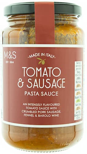 Marks & Spencer Rajčatová omáčka s kousky vepřové klobásy, fenyklem a vínem Barolo
