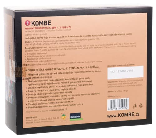 Kombe Korejský ženšenový čaj s jujubou 50ks150 gThis product is no longer available.Country: according to the current offerplease contact customer support for the exact information