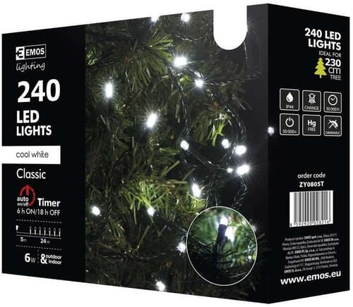 Emos LED vánoční světýlka s časovačem, studená bílá, délka 24 m