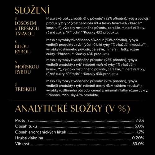 Kapsičky pro kočky s rybím výběrem ve šťávě. Obsahuje směs pečlivě vybraných, jemných plátků masa.