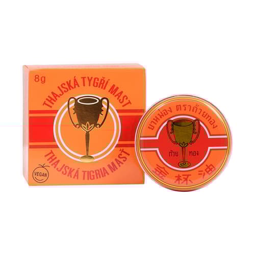 Thajská tygří mast GOLDEN CUP je vyrobena tradičními postupy pouze z přírodních surovin a její příznivý vliv na zdraví člověka jí zajistily světovou proslulost. Používá se při bolestech hlavy, svalových obtížích a stavech revmatizmu, bolestech kloubů, zad a nohou, poúrazových stavech, k aktivaci kožních buněk a k uvolnění napětí způsobené stresem a únavou. Vhodné pro vegany. Nepoužívat pro děti do 3 let.
