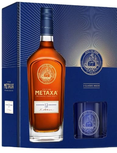 Metaxa 12* 40 % obj. se 2 skleničkami0,7 lTento produkt již není v nabídce.Země původu:dle aktuální nabídkypro přesnou informaci kontaktujte zákaznickou podporu