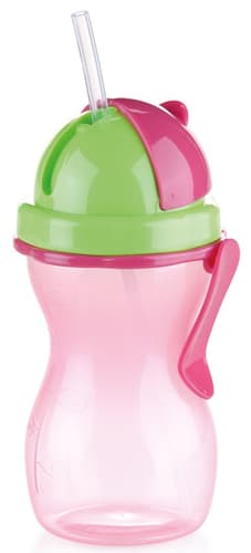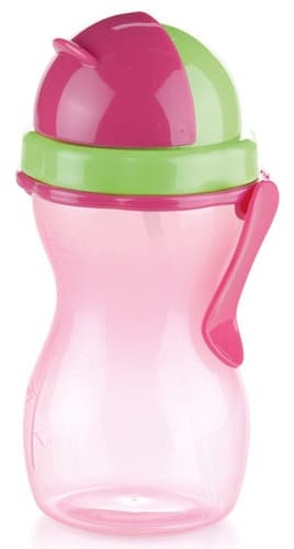 Bambini Dětská láhev s brčkem, zeleno-růžová