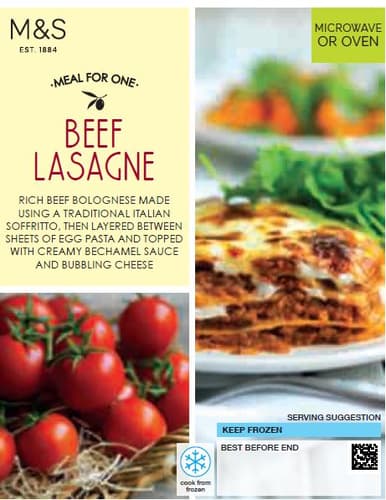 Marks & Spencer Mleté hovězí maso s rajčatovou omáčkou a těstovinami přelité bešamelem a sypané sýrem