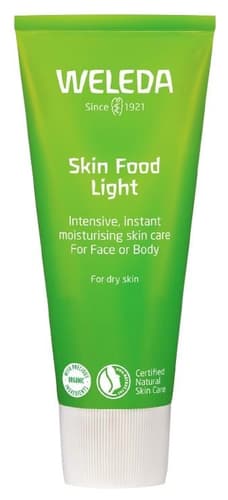 Skin food light přináší okamžitou úlevu suché pokožce. Lehké mléko kombinující organický slunečnicový olej s extrakty z violky, heřmánku a měsíčku se rychle vstřebává a poskytuje kůži pořádnou dávku hydratace a zklidnění, chrání ji před vysušením a podporuje její ochrannou bariéru.